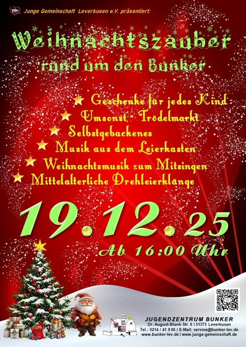 Weitere Info`s unter: Tel.: 0214/41906 (Jugendzentrum Bunker) oder info@junge-gemeinschaft.de